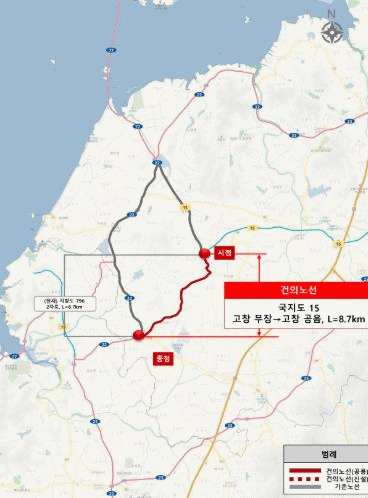 이에 고창군은 전북특별자치도, 전북연구원등과 협력해 국지도 승격을 위한 건의활동을 해왔고, 윤준병 국회의원도 선거공약으로 선형개량을 약속하며 힘을 실어왔다.