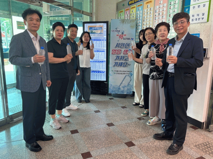 이번 사업은 폭염에 노출되기 쉬운 민원인, 폐지 수거 어르신, 노인일자리 참여자, 택배기사, 환경미화원 등 누구나 자유롭게 이용할 수 있도록 행정복지센터 입구에 음료용 냉장고를 설치하고, 말복까지 약 한 달간 매일 시원한 생수 100병을 제공하는 방식으로 운영된다.