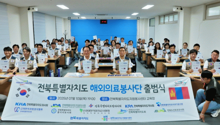 전북특별자치도 의료봉사단은 질병으로 고통받는 지구촌 시민들의 인도적 지원을 위해 2019년 캄보디아를 시작으로 전북특별자치도 4대 의약단체와 함께 긴밀하게 협력하여 추진하고 있으며 2024년부터는 몽골에서 의료봉사를 추진하고 있다.