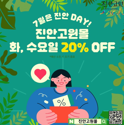 행사 기간 동안 진안고원몰에 입점한 모든 상품을 대상으로 20% 할인이 적용되며, 예산 소진 시 조기 종료될 수 있다.