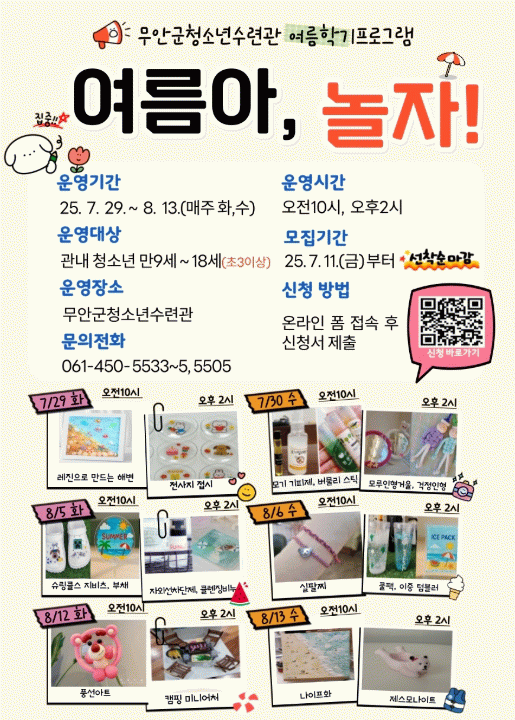 모집 대상은 무안군 관내 만 9세 이상 청소년이며, 7월 20일까지 선착순으로 신청을 받는다.
