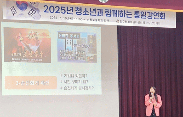 강연은 통일교육 전문 강사 황연이 강사가 맡아 ‘어서 와 북한 친구는 처음이지!’라는 주제로 남북한 청소년 간의 문화 차이를 쉽고 재미있게 풀어냈다. 특히 청소년 눈높이에 맞춘 다양한 사례와 설명, 그리고 중간에 진행된 통일 퀴즈 이벤트는 학생들의 큰 호응과 참여를 이끌어냈다.