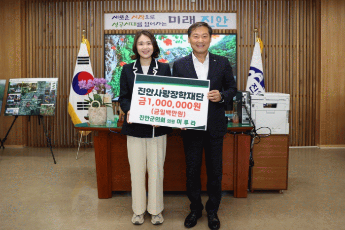 이에 전춘성 이사장은“진안군 아이들을 향한 이루라 의원의 꾸준한 관심과 후원 감사드린다”라며 “기탁해주신 소중한 장학금은 진안의 미래를 책임질 학생들이 꿈을 펼칠 수 있도록 소중하게 사용하겠다.”라고 화답했다.