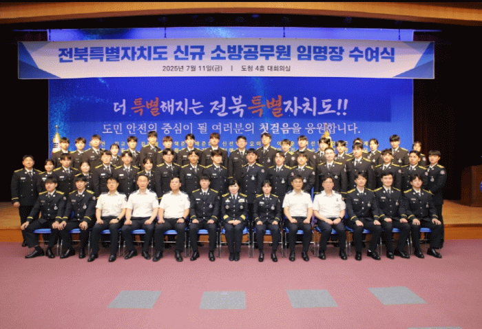 [클릭뉴스]전북특별자치도소방본부는 지난 7월 11일, 도청 대회의실에서 신규 소방공무원 44명에게 임용장을 수여하며 새내기 소방관들의 힘찬 출발을 응원했다.