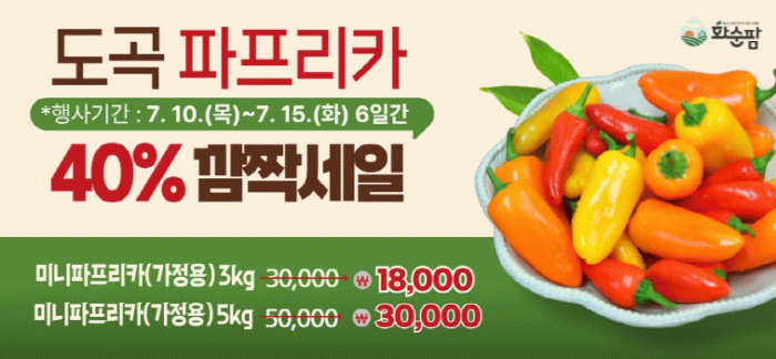 한편, 또 다른 대표 상품인 미니파프리카가 40% 저렴한 가격에 판매 중이며 이번 행사 이후 미니파프리카는 출하가 종료되어 11월경에나 다시 만나볼 수 있게 된다.