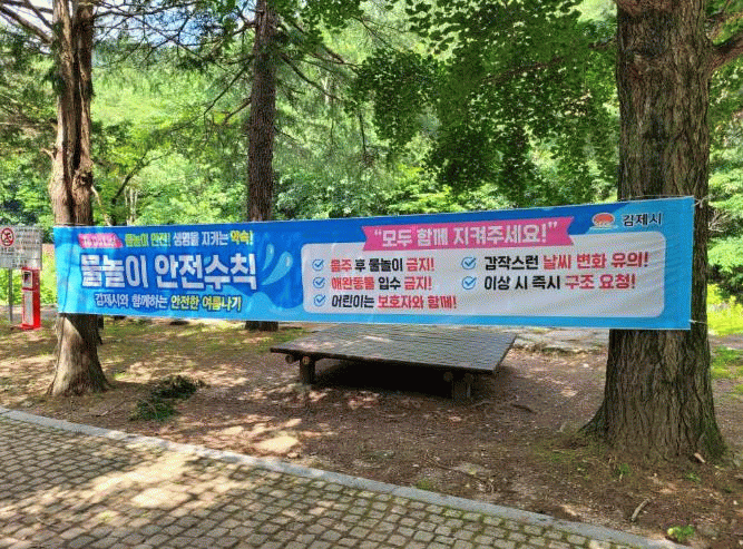 시는 물놀이 관리지역을 지난 3월 기반 시설, 수질 등을 고려해 당초 관리지역(금산천 하류 금평저수지 인근)에서 신규 관리지역(금산천 상류 금산사 내부 계곡)으로 변경 지정하고, 당초 관리지역에서 물놀이를 금지시킨 바 있다.