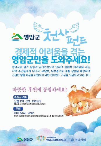김선미 영암군 인구청년과장은 “천사펀드는 영암군민 모두가 함께 만들어가는 따뜻한 연대의 상징이다. 복지사각지대 해소는 물론, 자립을 꿈꾸는 분들의 든든한 디딤돌 역할을 할 수 있도록 확대 운영해 나가겠다”고 말했다.
