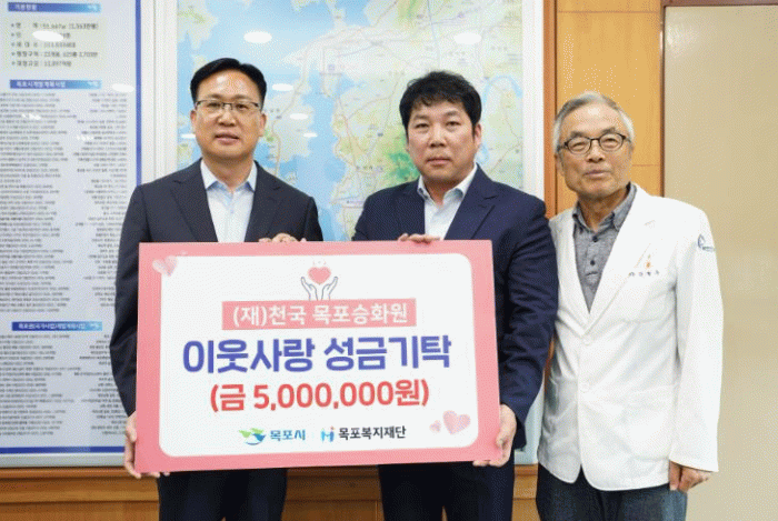 이날 성금 전달식에는 목포시장 권한대행 조석훈 부시장, 자치행정복지국장, 노인장애인과장을 비롯해 재단법인 천국 고원식 이사와 세화산업사 원용태 상무이사, 목포복지재단 강철수 이사장 등 관계자 7명이 참석해 뜻깊은 자리를 함께했다.
