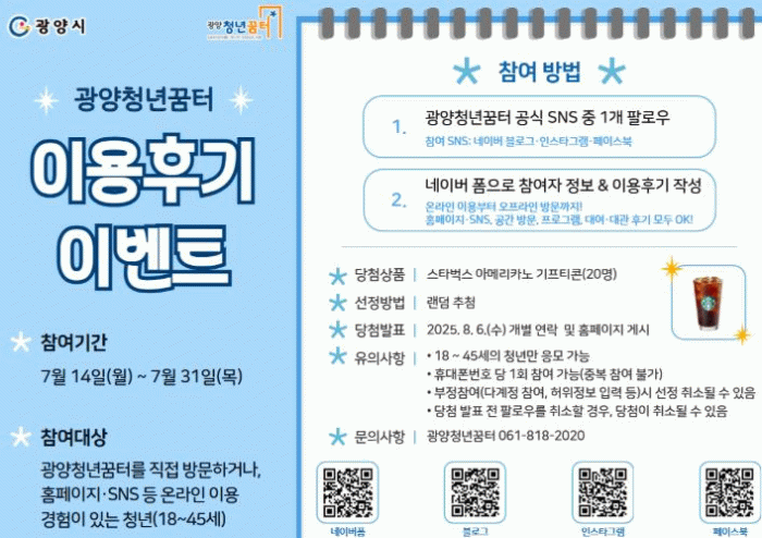 이벤트 관련 자세한 내용은 광양청년꿈터 누리집과 공식 SNS 계정을 통해 확인할 수 있다.