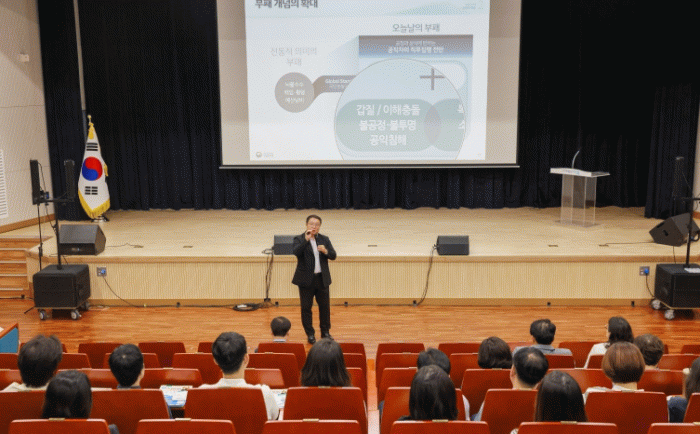 유용원 청렴연수원 강사는 ‘청렴으로 여는 전북형 미래교육’을 주제로 청렴 관련 법·제도에 대한 교육뿐만 아니라 공직사회 내에서 발생할 수 있는 부패와 갑질 문제에 대한 사례 중심의 설명으로 공직자들의 이해를 한층 높였다.