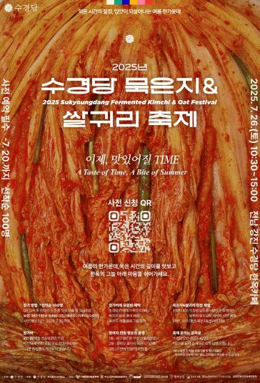 이번 축제를 준비한 수경당 관계자는, “강진의 대표 특산물인 묵은지와 쌀귀리가 이번 축제를 통해 더 많은 분들에게 알려지고, 나아가 강진이라는 지역 자체에 대한 관심도 함께 높아지길 바란다”라고 말했다.