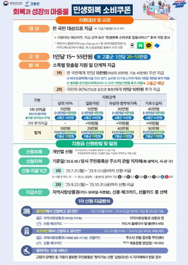 이번 1차로 지급되는 소비쿠폰은 고흥군 기준 최소 20만원에서 최대 45만원이 지급되며, ▲일반군민 20만원 ▲차상위·한부모가족은 35만원 ▲기초생활보장 수급자 45만원이다.