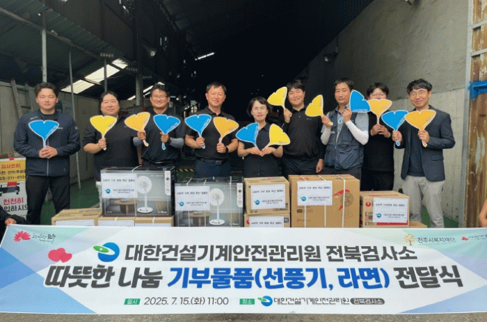 송명선 건설기계안전관리원 전북검사소장은 “조금이나마 시원한 여름을 보내는 데 도움이 되길 바라는 마음으로 기부하게 됐다”면서 “앞으로도 지역사회 어려운 이웃을 도울 수 있는 다양한 사회공헌 활동을 지속적으로 이어가겠다”고 밝혔다.