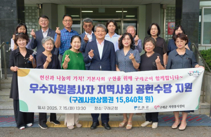 이번 지원은 자원봉사자의 노고를 인정하고 지역 경제에 활력을 불어넣기 위한 취지로 마련됐으며, 공헌수당은 12만 원 상당의 구례사랑상품권으로 지급된다.