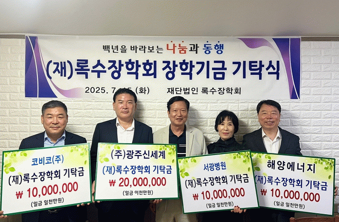 양진석 록수장학회 이사장은 “지역사회의 따뜻한 마음이 소방공무원 자녀들의 미래를 밝히는 데 큰 힘이 되고 있다”며 “특히 이번 기탁에 함께해주신 ㈜광주신세계, 코비코㈜, 서광병원, ㈜해양에너지에 깊이 감사드린다. 이같은 따뜻한 나눔이 사회에 긍정적인 변화를 이끌어낼 것으로 기대한다”고 말했다.
