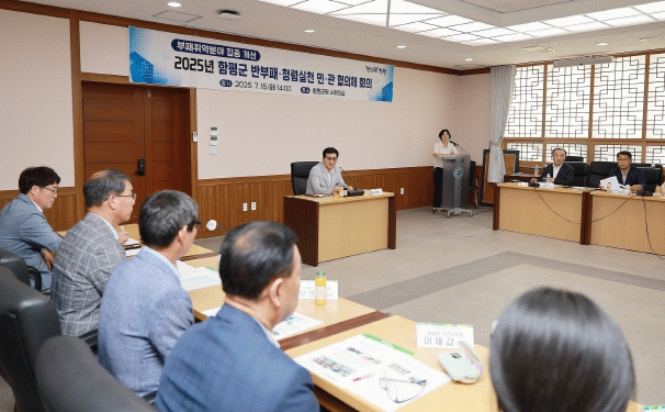 함평군은 16일 “제1회 반부패·청렴실천 민관협의체 회의가 지난 15일 군청 소회의실에서 성공적으로 마무리됐다”고 밝혔다.