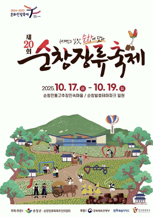 한편, 제20회 순창장류축제는 10월 17일부터 19일까지 3일간 순창전통고추장민속마을과 발효테마파크 일원에서 개최될 예정이다.