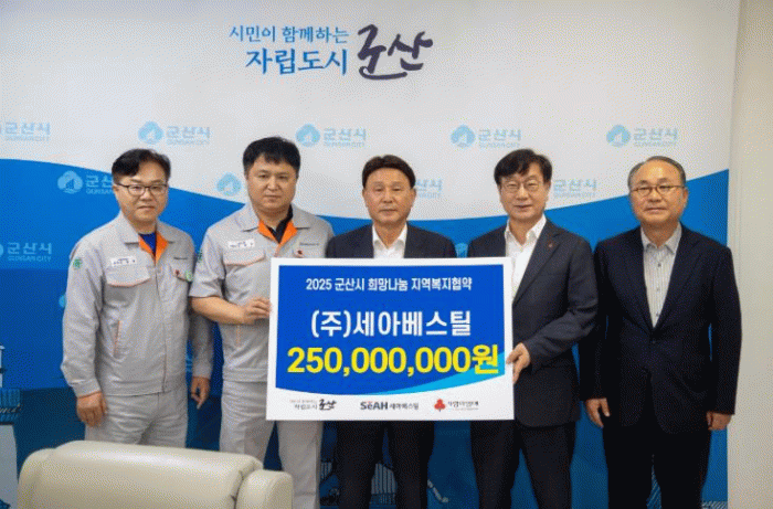 한편, ㈜세아베스틸은 군산시 소룡동에 자리한 특수강·대형 단조품 등의 제조기업으로, 2012년부터 현재까지 약 28억 9,000만 원 규모의 사회공헌 활동을 이어오며 지역사회와의 상생을 실천하고 있다.
