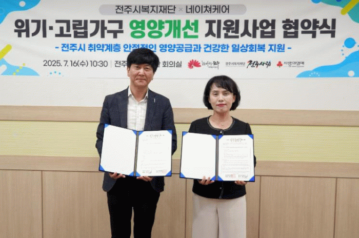 이날 협약에 따라 전주시복지재단과 네이처케어는 전주지역 영양결핍 위기가구를 대상으로 균형영양식 ‘뉴케어’ 제품을 월 2박스씩, 최대 3개월간 지원할 계획이다.