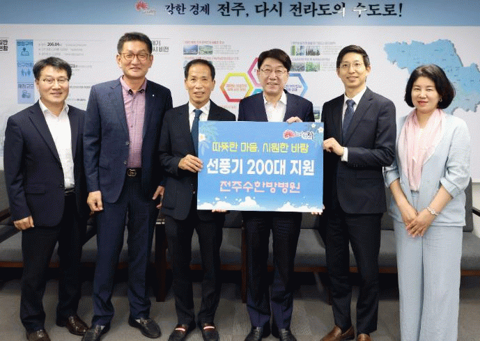 전주시 관계자는 “매년 잊지 않고 어려운 이웃을 위해 선풍기를 기부해 주시는 수한방병원에 깊은 감사의 마음을 전한다”면서 “기탁된 물품은 폭염에 취약한 가정과 시설에 소중히 전달하겠다”고 말했다.