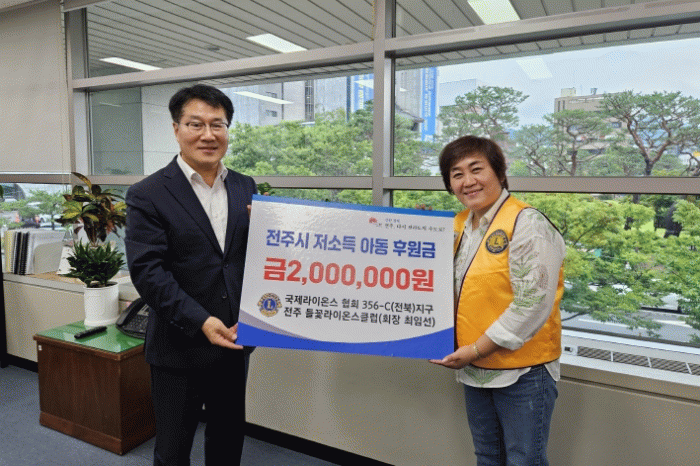 전주시 관계자는 “지역사회 아동을 위한 뜻깊은 나눔을 해주신 전주 들꽃 라이온스클럽에 깊이 감사드린다”며 “이번 후원금은 사회복지공동모금회를 통해 생활이 어려운 아동들에게 정성껏 전달하겠다”고 밝혔다.