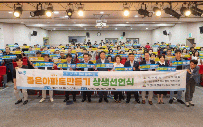 익산시는 16일 모현시립도서관에서 '노사민정이 함께하는 좋은 아파트 만들기 상생 선언식'을 열었다.