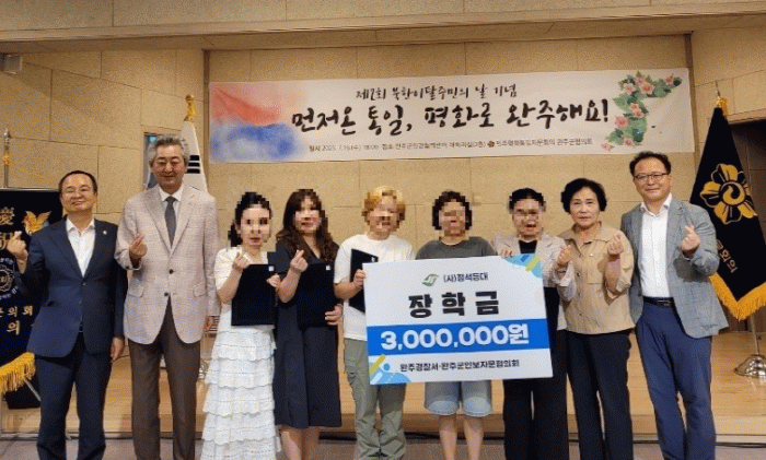 이번 전달식은 북한이탈주민의 날을 기념하여 완주군민으로 정착한 다음세대의 주인공인 미래의 꿈나무 5명에게 장학금(300만원)을 전달했다.
