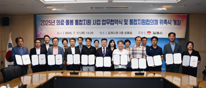 한편, 시는 이번 협약 및 협의체 출범을 계기로 지역사회 내 의료와 돌봄의 벽을 허물고, 시민 중심의 통합적인 서비스 제공을 통해 '김제형 통합돌봄'이 성공적인 모델로 자리매김할 것으로 기대하고 있다.