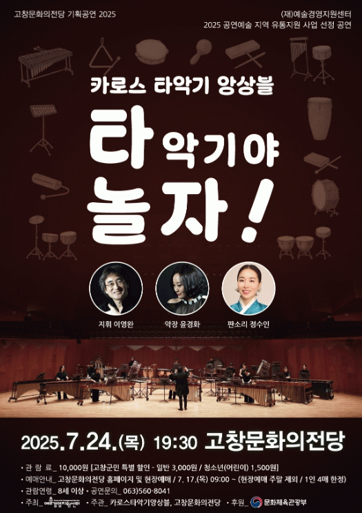 이번 공연은 (재)예술경영지원센터 2025 공연예술 지역 유통지원 사업 선정 공연으로 예술경영지원센터가 주최하고 카로스 타악기 앙상블과 고창문화의전당이 주관한다.