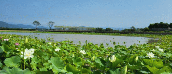 연꽃은 6월부터 피기 시작해 현재는 습지를 가득 채운 연꽃 군락이 장관을 이루고 있다.