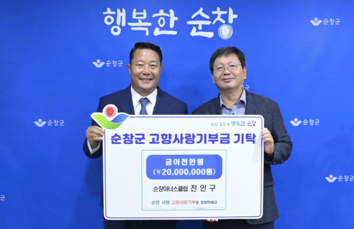 최영일 순창군수는 “고향 순창을 향한 변함없는 관심과 나눔을 실천해주신 전인구 고문께 깊이 감사드린다”며 “이번 기부는 금액 이상의 감동을 주는 의미 있는 사례로 기록될 것이며, 군민 모두가 행복한 순창을 만들어가는 데 소중히 활용하겠다”고 전했다.