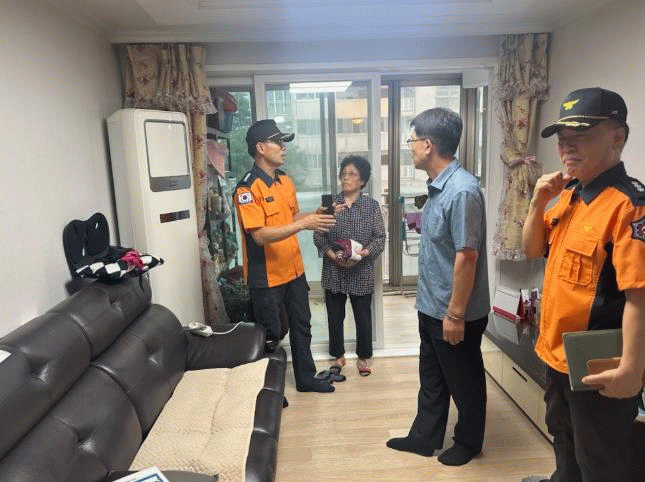 이번 현장점검은 관내 구교주공2차아파트에 대하여 소방과 유관기관 전기,건축 분야가 함께 진행됐고 특히 노후아파트는 과거 완화된 화재안전 기준이 적용되어 소방시설 미비 등 초기 화재 대응에 취약하여 선제적 안전점검을 통해 도민의 불안을 해소하기 위해 세대를 직접 방문하여 생활안전 교육과 누전방지용 멀티콘센트, 단독경보형감지기 설치를 병행했다.