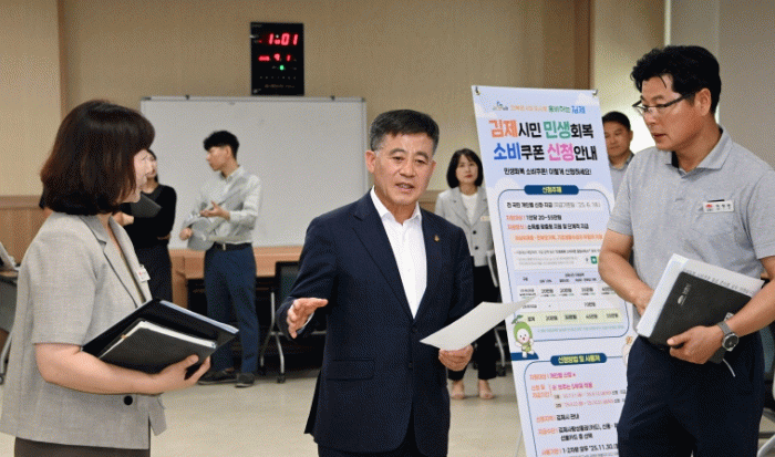김제시는 오는 21일부터 시작되는 '민생회복 소비쿠폰'의 원활한 지급을 위해 관내 읍면동 행정복지센터의 준비상황을 점검했다고 밝혔다.