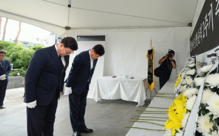 문승우 의장은 18일 김관영 도지사와 함께 헌화 후 묵념하며 채 상병을 추모했다. 또한 이명연·김희수 부의장과 각 상임위원장을 비롯한 도의원들에 이어 도와 교육청 등 집행부 간부들도 채 상병의 명복을 빌었다.