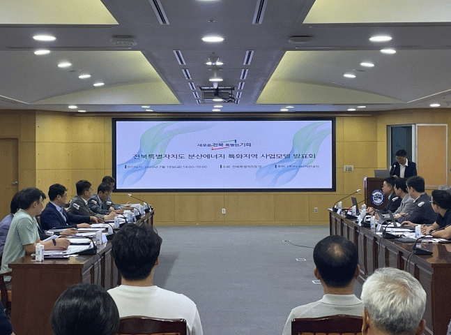 도는 18일 도청 중회의실에서 민간기업과 함께 ‘전북형 분산에너지특화지역 사업모델 발표회’를 열고, 지역 여건에 적합한 에너지전환 전략을 공유했다.