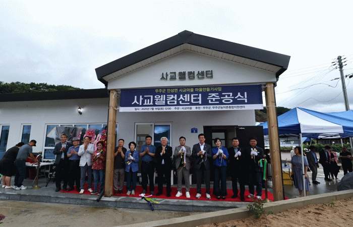 사교새마을회와 무주군농어촌종합지원센터가 공동 주관한 이날 준공식에는 황인홍 무주군수를 비롯해 오광석 무주군의회 의장, 마을주민 등 100여 명이 참석해 의미를 더했다.