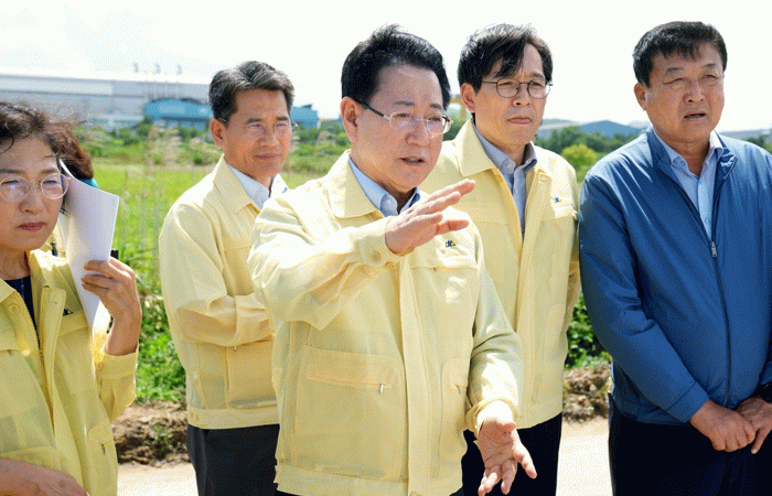 김영록 지사는 회의에 이어 나주 동강면의 원예작물 침수 현장과 영암 나불도 나불1배수통문 파손 현장을 직접 찾아 피해 상황을 점검하고, 신속한 복구 조치를 당부했다.