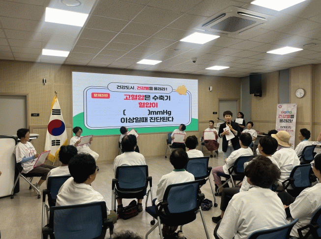 레크리에이션 강사의 진행으로 50여 명의 어르신들이 참여했으며 주입식 교육이 아닌 주민 참여형 퀴즈대회로 심뇌혈관질환에 대한 정보 제공을 통해 고혈압·당뇨병·이상지질혈증 등 심뇌혈관질환의 관리 및 합병증 예방을 위한 시간이 마련됐다.