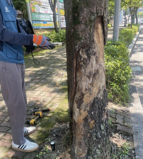 이번 조사는 수목의 형상, 줄기 기울기, 뿌리부 결함 등을 확인하는 기초조사와 함께, TS Meter 전기저항 측정기, 내시경 촬영 등 전문 장비를 활용한 정밀조사도 병행해 진행됐다.