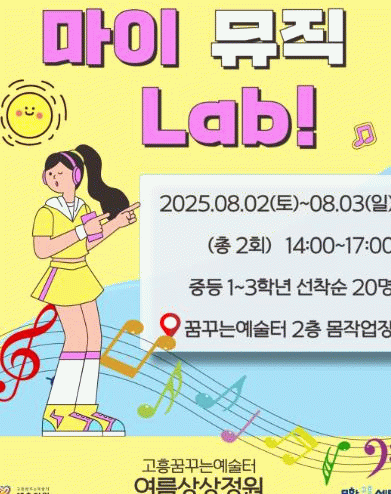 ‘마이뮤직Lab’은 중학생 20명을 대상으로 오는 7월 31일까지 참가자를 모집하며, 8월 2일부터 3일까지 진행된다.