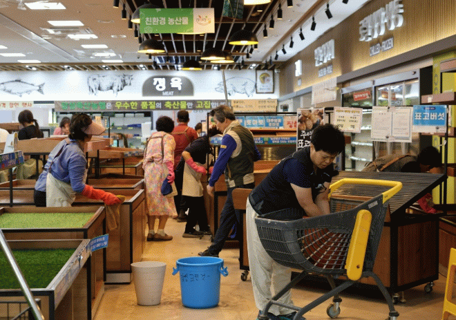 농업인들은 매장 곳곳에 쌓인 흙과 폐기물을 수거하고 청소하며 구슬땀을 흘렸다.