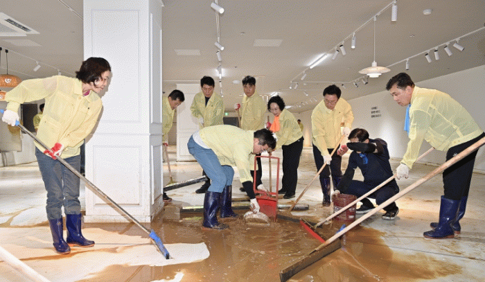 서구의회 의원들과 의회사무국 직원들은 농성동, 서창동, 유덕동 등 일대에서 자발적으로 참여해 피해 가구의 침수 물품 정리, 토사 제거, 쓰레기 수거, 하수도 배수구 정비 등 복구 작업에 구슬땀을 흘렸다.
