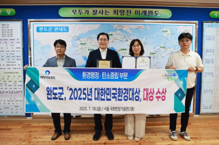 완도군은 해조류 양식 기반의 탄소 흡수원 확대를 위한 노력, 해양 쓰레기 통합 관리 체계 구축, 바다 숲 조성 등 해양 환경 보전 및 탄소 중립 실현에 기여한 성과를 인정받아 수상의 영예를 안았다.