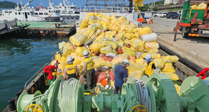 여수시는 올해 상반기 총 1,600여 톤의 해양쓰레기를 수거했으며, 연간 목표는 2,800톤이다.