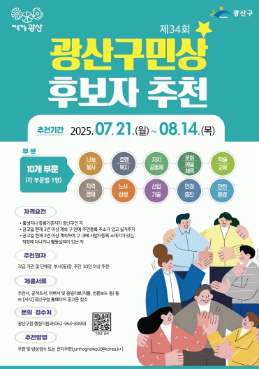 광산구민상 시상은 제34회 ‘광산구민의 날’ 기념식에서 한다.