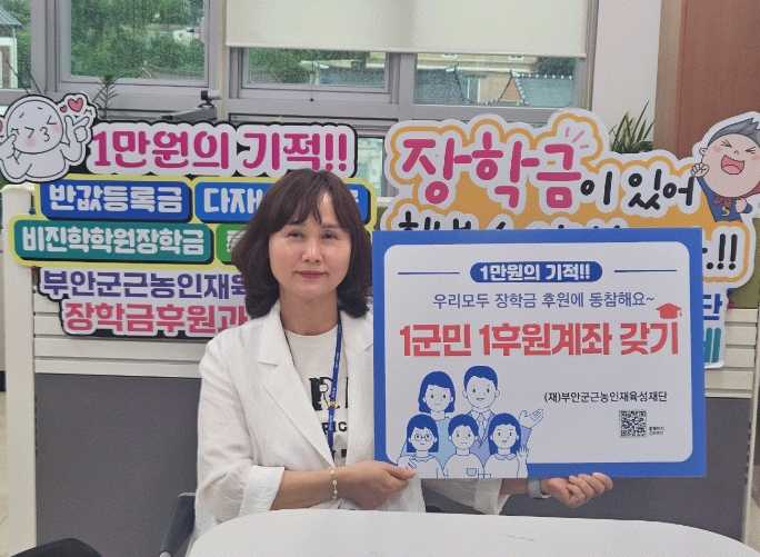 대학교 전 학년 전 학기 연간 2200여명의 학생들에게 약 20억원의 장학금을 지급해 온 부안군이 장학금 수혜자인 군민들이 후원의 주체가 되는 장기적으로 안정적이고 건전한 재단 운영기반을 마련하고자 장학금 1군민 1후원계좌 갖기 운동에 박차를 가하고 있다.