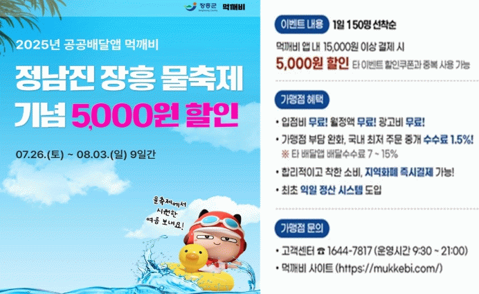 이번 이벤트는 7월 26일부터 8월 3일까지 9일간 공공배달앱 먹깨비를 통해 진행된다.