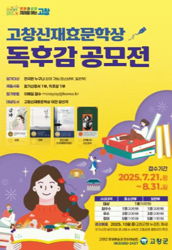 나윤옥 고창군 문화예술과장은 “독후감 공모전을 통해 고창신재효문학상의 대내외적인 홍보와 글쓰기의 즐거움을 확산시킬 수 있기를 기대한다”며 “전국을 대상으로 고창의 위상을 높이고 다양한 문화콘텐츠 활용을 위해 최선을 다하겠다”고 전했다.
