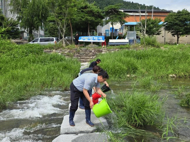 이번 방류에는 관계 공무원과 지역 주민 등 7명이 함께 참여해 붕어 치어를 직접 하천에 방류해 건강한 수생환경 조성과 자원 복원의 의미를 더했다.