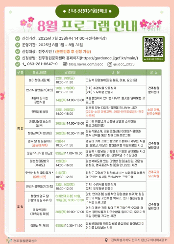 참여를 원하는 시민은 전주정원문화센터 누리집을 통해 선착순 신청하면 된다.